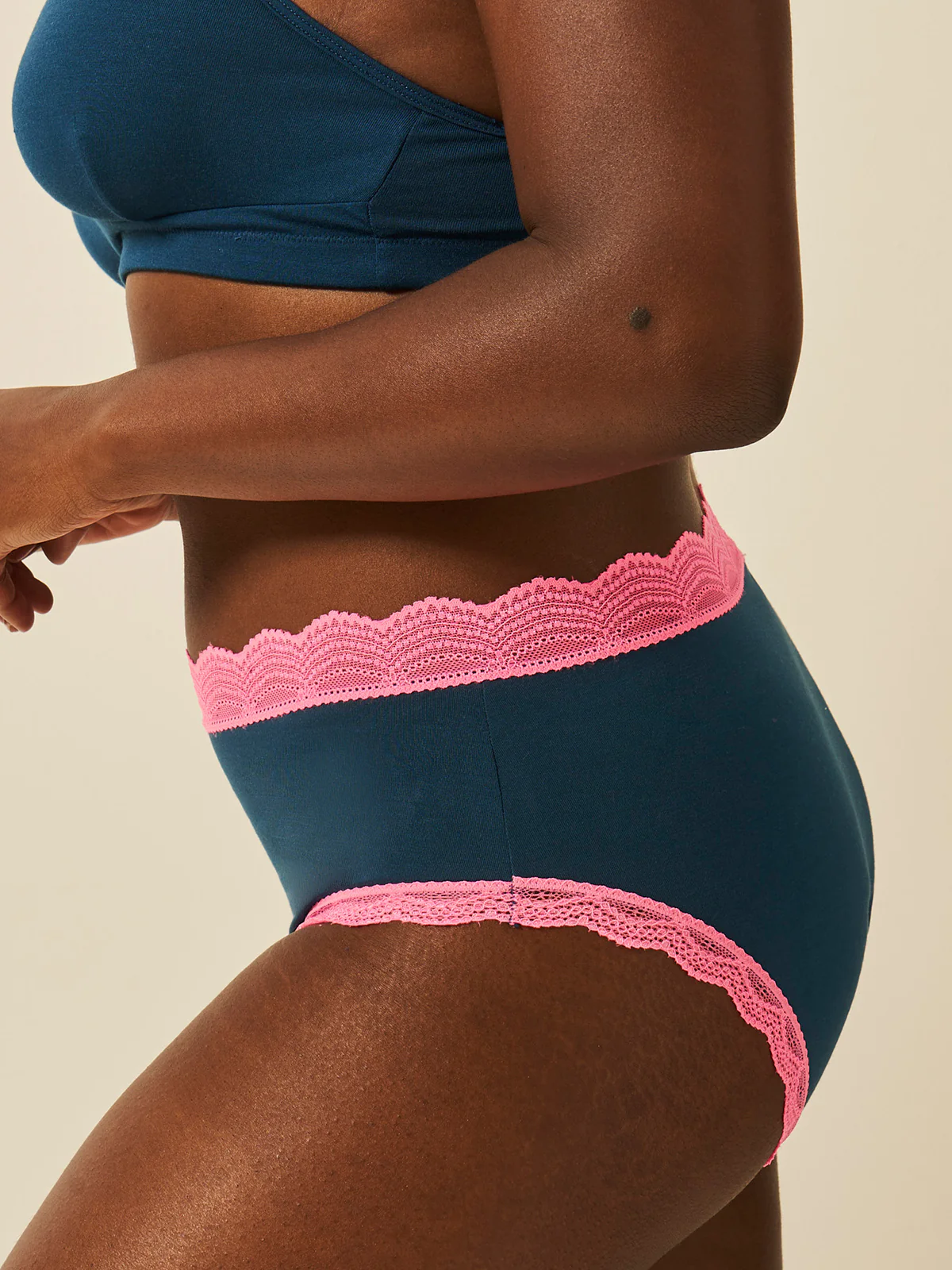 Treat your cheeks to the High Rise Knicker in Midnight Neon Pink, for days when you want a little more coverage, and a lot more confidence. Sitting softly and slightly higher at the waist with generous back coverage, this shape offers a smooth, tucked-in feeling you’ll actually look forward to wearing. Made to stay in place all day without digging, rolling, or riding up, it's the support act you never knew you needed.